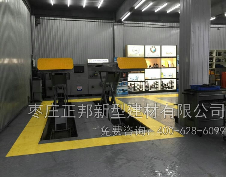 正邦实心拼接格栅在汽车修理厂的铺设效果图