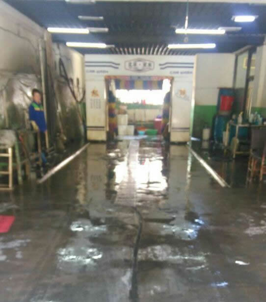 再看一家地面湿滑的洗车店装修效果