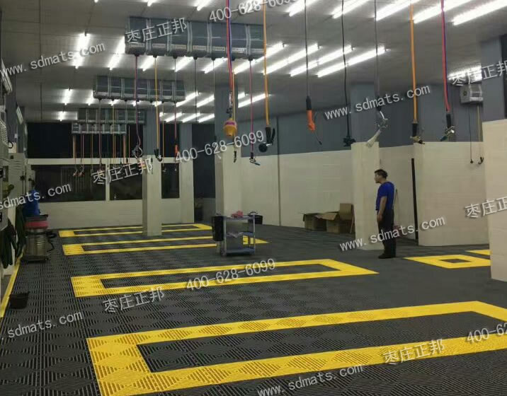 正邦实心拼接格栅在汽车修理厂的铺设效果图